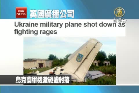 繼續是英國廣播公司BBC的報導:烏克蘭官方表示,一架軍方的運輸機在與叛亂份子激戰時被擊落。可能是由俄羅斯發出。