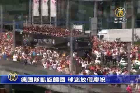 【新唐人亞太台2014年7月16日訊】昨天,以1比0戰勝阿根廷的德國足球國家代表隊,返回德國柏林,受到球迷英雄式的熱烈歡迎。