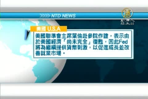 美國聯準會主席葉倫赴參院作證,表示由於美國經濟「尚未完全」復甦,因此Fed將為繼續提供貨幣刺激,以促進成長並改善就業市場。
