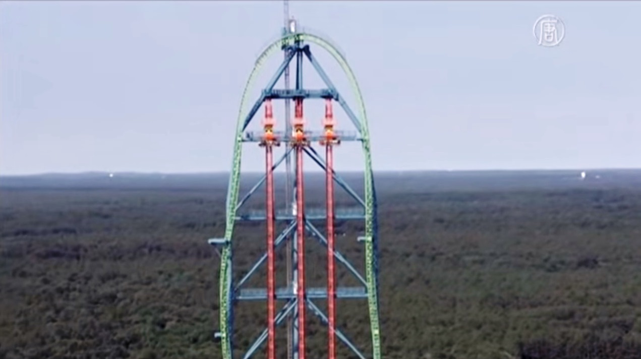 【新唐人亞太台 2014 年 07 月 19 日訊】世界最高建築是杜拜的哈里發塔,而遊樂設施也有最高的,美國紐澤西一家冒險樂園蓋了一個全球最高的自由落體設施,將近是台灣大怒神的2.4倍高!