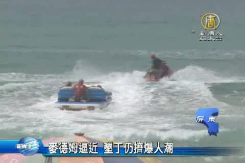 儘管中颱麥德姆步步近逼,週一還是艷陽高照的墾丁南灣,海邊依舊擠滿戲水人潮。