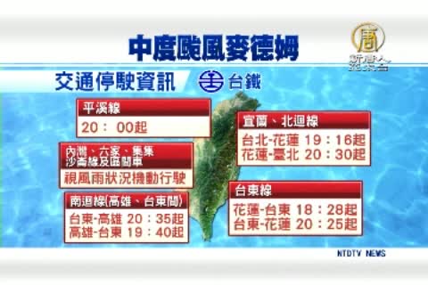 【新唐人亞太台2014年7月22日訊】帶您快速瀏覽中度颱風麥德姆的相關資訊。(會再修) 人事行政局已經發布,明天7月23日停止上班、停止上課的有:宜蘭縣 花蓮縣 臺東縣