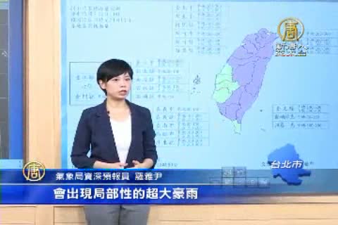 氣象局資深預報員 羅雅尹:「今天到明天這段期間,各地都有可能出現大雨或豪雨以上的等級,那其中在台中以北地區,南投地區,還有台東地區是有機會出現局部性的大豪雨,甚至在宜蘭地區 花蓮地區還有各地的山區,會出現局部性的超大豪雨。」