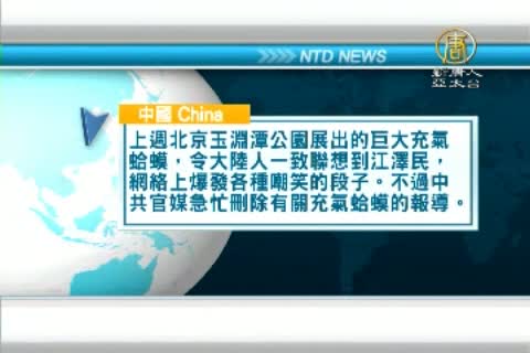 上週北京玉淵潭公園展出的巨大充氣蛤蟆,令大陸人一致聯想到江澤民,網絡上爆發各種嘲笑的段子。不過,中共官媒急忙刪除有關充氣蛤蟆的報導。