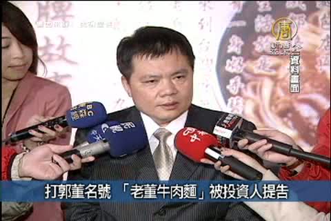 曾獲台北市牛肉麵節冠軍的「老董牛肉麵」,因為被郭台銘相中,成為婚宴菜單而聲名大噪,不料有民眾向媒體投訴,老董牛肉麵對外販售未上市股票超過1億元,被投資人質疑是騙局提告,負責人劉正雄則回應表示,股東的控訴不實,已獲檢察官作成不起訴處分。