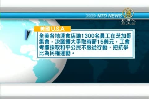 全美各地速食店逾1300名員工在芝加哥集會,決議擴大爭取時薪15美元,工會考慮採取和平公民不服從行動,把抗爭比為民權運動。