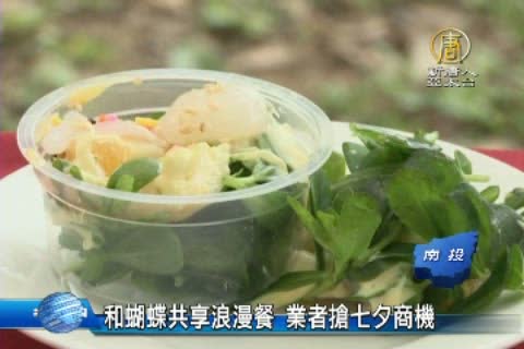 【新唐人亞太台2014年7月30日訊】美麗鮮豔的蝴蝶大家都喜愛,但是您知道嗎?蝴蝶愛吃的蜜源食物,也能作出好吃的創意料理,南投有家蝴蝶復育園區業者,將蜜源食物入菜,作出不同風味的情人套餐,也搶搭即將到來的七夕商機。