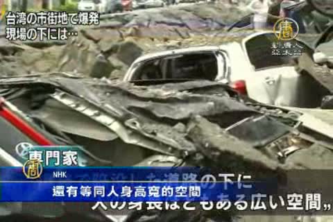 NHK:「日本專家表示,因為爆炸坍塌的道路下方,還有等同人身高寬的空間。推測是大量的可燃氣體漏出,累積在地下,和空氣混和後起火。」