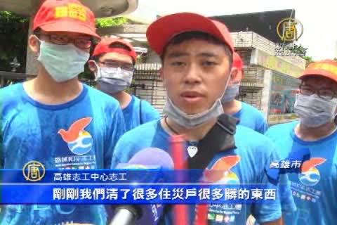 高雄志工中心志工 :「我們來這邊就是幫忙做搬運 已及做清潔的一些工作 像這邊看到很多的災區 塌的很嚴重 剛剛我們清了很多髒的東西 幫忙她們把它做清理。」