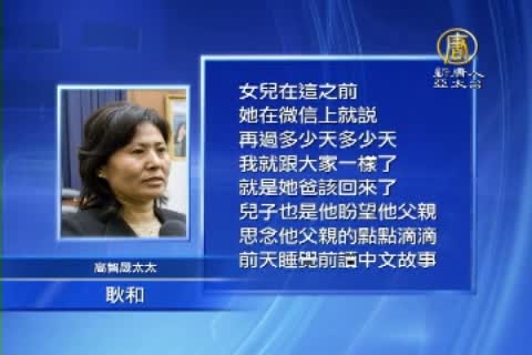 【新唐人亞太台2014年8月5日訊】中國大陸維權律師高智晟,歷經三年冤獄。當年下令將高智晟律師立為專案、施以迫害的周永康已經落馬,但高智晟仍沒有歸來。 高智晟的妻子耿和要求中共當局,如期釋放高智晟,讓他們一家人團聚,言談中滿是思念,令人鼻酸。