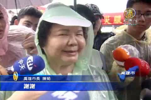 一大早,高雄市長陳菊就到災區勘災,等著行政院長江宜樺到來。