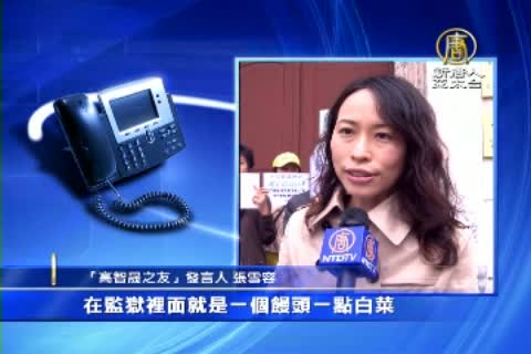 「高智晟律師出獄時,臉色已經非常的蒼白,而且他是很不習慣有陽光。一個人七天二十四小時被關在一個很小的地方,沒有人跟他講話,所以哪,他語言功能比較差了,說話的時候說不了幾句,然後嘴巴都會抖動。在監獄裡面就是一個饅頭一碗白菜。」