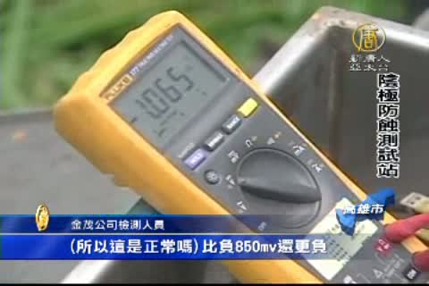 【新唐人亞太台2014年8月15日訊】接連發生的重大氣爆事件,都是和氣體洩露有關。現在。全面清查管線,成了關鍵詞。我們再回到高雄氣爆事件的後續處理,經濟部和高雄市政府聯手清查境內石化管線,上午第一波稽查,以中油在林園廠附近和鳳仁路上的管線為主,透過「防蝕電位記錄儀」,上午測到的管線電位數據是在「負850毫伏特」以下,屬於正常值範圍。