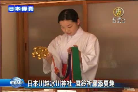 記者 林妤:「神社是日本人信仰中不可或缺的一部分,記者現在來到了位於川越市的冰川神社。這座神社擁有一千五百年的歷史,是關東地區著名的結緣神社。總是吸引許多人前來祈求平安和姻緣。炎炎夏日,神社特地掛上了五彩繽紛的風鈴,成了另一道特殊的風景。」