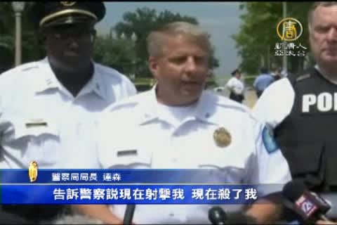 警察局局長達森:「當嫌犯亮出他的刀子時,他們(警察)就拔出武器,警察給嫌犯口頭命令,停、放下刀子、停、放下刀子。嫌犯來到警察前面3~4英呎的距離,警察就開槍,兩個警察開槍射殺嫌犯,嫌犯就當場死亡。」