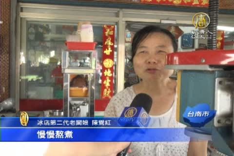 冰店第二代老闆娘 陳鶯紅「黑糖膏要炒,然後快炒後,加水,慢慢熬煮。」