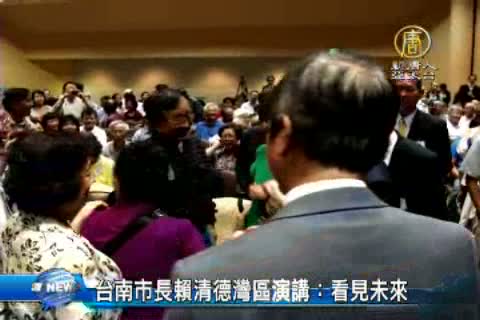 【新唐人亞太台2014年8月26日訊】台南市長賴清德結束訪美行程,已經在今天凌晨抵台,而他在美國的最後一個行程,是拜訪灣區僑界並發表演說。賴清德也把這半年多來,僑胞關心的幾個台灣議題,像是兩岸經貿走向、太陽花學運和年底選舉,提出他的看法和說明。