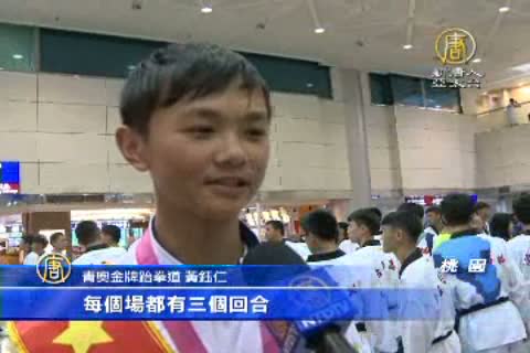 本屆青奧跆拳道項目包辦雙金的選手黃懷萱及黃鈺仁,一踏進國門立刻受到學弟妹們熱烈歡迎。