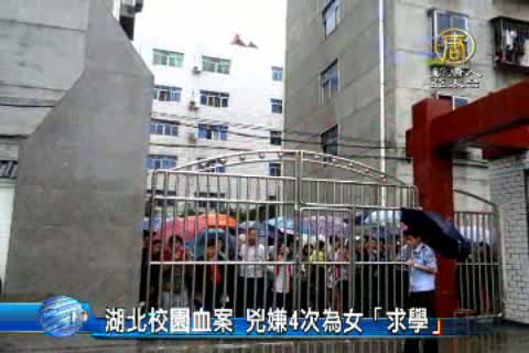 【新唐人亞太台2014年9月2日訊】大陸湖北省十堰市鄖(讀音: 雲)西縣城關鎮的「東方小學」,週一(1日)發生一起學生家長因女兒被學校拒收,憤而持刀砍人事件。造成最少3名學生和1名老師死亡,另有5人受傷。之後這名家長也在校園跳樓自殺 。