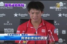 日本選手錦織圭:「我知道我有些緊張,在這裡首次打半決賽很緊張,我覺得自信心對今天的比賽很有幫助,我準備的很充分,打得積極。」