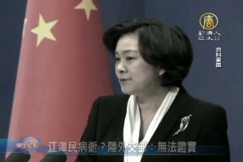 【新唐人亞太台2014年9月9日訊】88歲的中共前總書記江澤民,近日屢傳因病逝世,但消息一直未獲證實。中共外交部發言人華春瑩今天(9日)在例行記者會,被媒體問到有關江澤民逝世的消息是否屬實,華春瑩僅表示,首次聽到有關傳聞,無法證實。