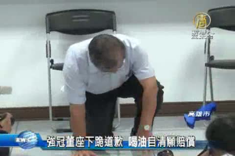 【新唐人亞太台2014年9月12日訊】繼續來關心餿水油風暴最新發展,昨天上午,衛福部人員到高雄強冠公司,查封從香港進口劣質工業用油,並調查進口油品的用途。同一時間,強冠董事長葉文祥召開記者會,三度下跪道歉,聲稱公司3億資產加上對金寶運、郭烈成求償所得,全數賠給受害下游廠商。
