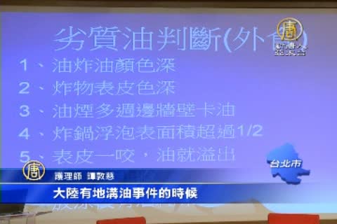 【新唐人亞太台2014年9月15日訊】餿水油風波,現在是越滾越大,最新調查顯示,問題油的源頭可能就是中國的地溝油,其實,已故毒物專家林杰樑醫師,在生前,早就預言,兩岸三地的食安風險,也許早就已經連成一器。