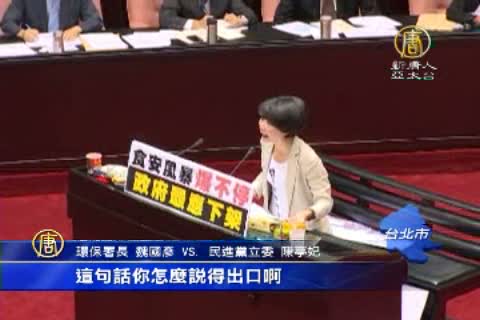 【新唐人亞太台2014年9月16日訊】民眾對食品安全人心惶惶,立法院今天施政總質詢,議題都圍繞在政府的後續處理。多位立委也要求,衛福部長邱文達應負起政治責任下台。邱文達也賭上烏紗帽,宣示兩週內要完成餿水油全面清查。
