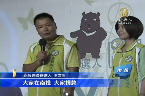 【新唐人亞太台2014年9月18日訊】選舉消息,今年南投縣長寶座,雙雄爭霸。民進黨李文忠為了戰備糧食,昨晚在南投市舉辦一場募款餐會。前來參加的有民進黨中央選舉召集人蘇嘉全、立委蔡煌瑯、蔡其昌立委、縣議員等政要及企業人士參與,席開140桌,場面熱烈。