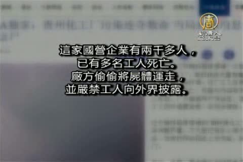 【新唐人亞太台2014年9月26日訊】來關心中國新聞。貴州省遵義市桐梓縣燎原鎮的大型國企「桐梓煤化工」,每日排放大量有毒氣體,嚴重污染當地環境多年,近一個月來,該廠工人及附近村民有多人死亡,村民懷疑跟該廠排放毒氣有關。