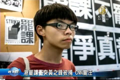 【新唐人亞太台2014年9月27日訊】再來看到,香港昨晚的衝突中,中學團體「學民思潮」召集人黃之鋒,被以襲警罪逮捕,受到國際媒體關注,登上美國CNN網站頭條。CNN的報導形容,香港學生以民主之名罷課,雖然在場許多學生年紀多沒有經歷英國統治時期,但他們對民主的遠景,十分清楚。今天上午,警方一共逮捕13人。香港罷課衝突事件,目前持續受到國際媒體的聚焦關注。