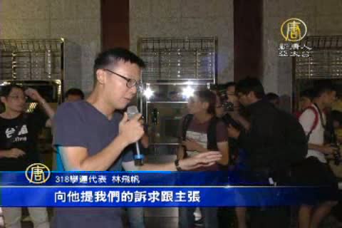 318學運代表 林飛帆:「明天早上我們希望能夠見到,香港駐台辦事處的代表,我們希望明天早上能夠直接見到他,我們也要請他,來做一些回應,」