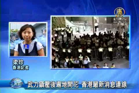 【新唐人亞太台2014年9月29日訊】港人佔中,要求特首梁振英下台,今天,英國外交部已經發表三點聲明,支持香港普選。而今晚香港的抗爭行動,已經轉為遍地開花,參與人數可能比昨天還多,我們馬上連線到香港記者梁珍,帶來最新消息,梁珍。