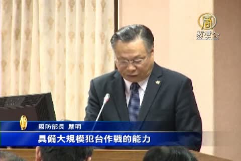 國防部長嚴明到立法院進行業務報告,直指中共多次以分裂勢力為犯台藉口,預估解放軍在2020年,就能具備大規模犯台作戰能力。