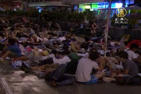 【新唐人亞太台2014年10月6日訊】早安新唐人,馬上來帶您關心,香港公民抗命算是安然度過了第九個夜晚,一直到清晨六點,港府並沒有採取清場的動作。不過,由於特首梁振英已強勢下達最後通牒,表示要在今天恢復秩序,否則「採取一切必要行動」,因此現場所有人士包括媒體,仍舊是精神緊繃,香港雨傘運動的最新情況,我們連線在旺角的記者,明筑。