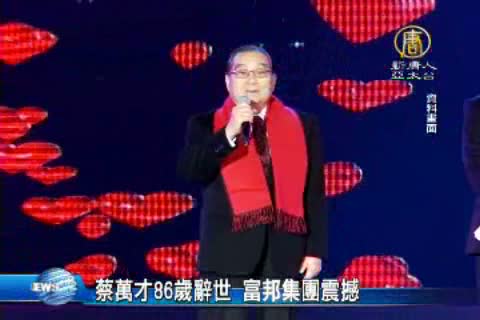 【新唐人亞太台2014年10月6日訊】2012年,曾榮登台灣首富的富邦集團總裁蔡萬才,在昨天午間辭世,享壽八十六歲。根據今年富比士 發布的台灣前10大富豪 華人排行榜,蔡萬才家族身家高達76億美元,位居第2,而蔡萬的殞落,也讓富邦集團內部相當震撼。據了解,蔡萬才上週還前往位於台北市建國南路的富邦金控總部上班。