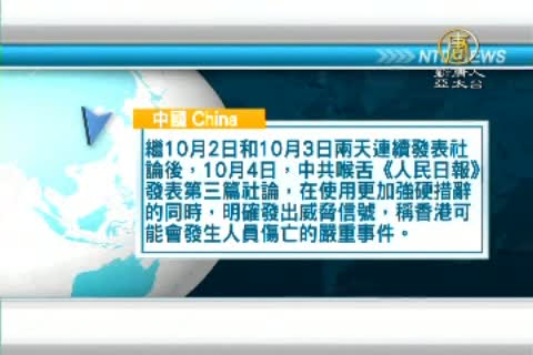 繼10月2日和10月3日兩天連續發表社論後,10月4日,中共喉舌《人民日報》發表第三篇社論,在使用更加強硬措辭的同時,明確發出威脅信號,稱香港可能會發生人員傷亡的嚴重事件。