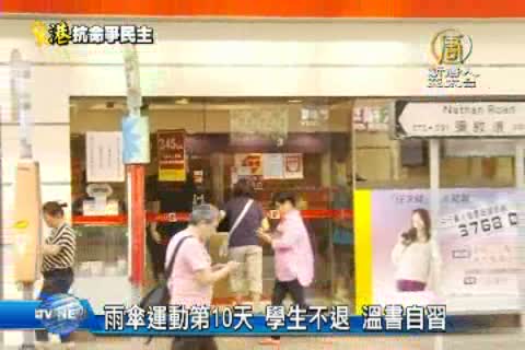 【新唐人亞太台2014年10月7日訊】香港雨傘運動進入第10天,民眾仍然守在旺角和金鐘等抗爭地點,我們香港團隊現場觀察,抗爭學生始終維持和平有序,有的人利用時間溫書自習,還有許多標語,提醒爭取真普選的運動初衷。