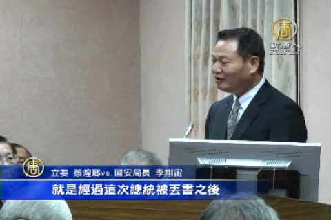 立委 蔡煌瑯 vs.國安局長 李翔宙:「有沒有史上最高規格維安,雙十國慶有沒有?」「報告委員你講這一段我並不同意,因為我們是按照往年所有歷次案例發生以後,我們去做精進工作檢討」「就是經過這次總統被丟書之後,史上雙十國慶最高維安規格,將要在後天登場」「報告委員沒有」「有維安人員跟我爆料這一次的維安規格,超過北韓金正恩的維安規格。」