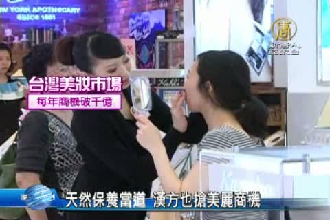 【新唐人亞太台2014年10月8日訊】天氣開始轉涼,除了添加衣物,肌膚也要小心呵護,許多女性朋友相當注意,選擇正確的保養品,讓臉部肌膚抵抗換季的挑戰,而您知道嗎?台灣美妝市場每年商機,就破千億元,讓傳統老字號的中藥產業也積極投入研發,要來搶攻美麗商機。