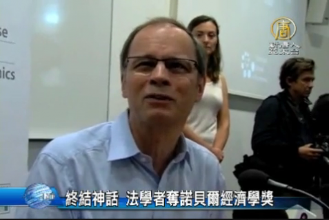 【新唐人亞太台2014年10月14日訊】今年諾貝爾經濟學獎由法國學者提羅勒獲得,他的研究貢獻在「如何理解與規範被強大企業把持的產業」,另外,他也結束了美國諾貝爾經濟學獎,從1999年來,15連霸的紀錄。