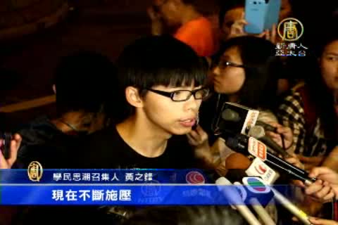 【新唐人亞太台2014年10月15日訊】對於香港警方的清場行動。學民思潮召集人黃之鋒批評警方,以所謂的清除路面障礙為藉口,藉機清場,是侮辱市民的智慧。