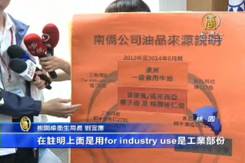 桃園縣副縣長 黃宏斌:「部份進口原料這個報關跟文件有疑慮,南僑是以工業油用來報關, 我們現在請南僑補齊官方的證明文件,在官方的證明文件他提出之前,他的123項產品,必需預防性的下架。」