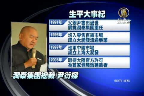【新唐人亞太台2014年10月16日訊】潤泰集團總裁尹衍樑,剛剛受邀擔任頂新食品安全委員會臨時召集人,那麼來看他的背景介紹。65歲的尹衍樑,1975年接掌父親創辦的潤泰紡織,後來創立潤華機械及染料廠,但失敗收場,後來又跨足營建業和金融業,1996年,尹衍樑成立大潤發流通事業,之後還西進大陸。2005年尹衍樑取得中共官方許可,成為台灣首家登陸營建業者。另外,尹衍樑的成長背景曾經歷過「管訓班」,而當時擔任數學老師的人,正是立法院長王金平。尹衍樑雖然沒有食品業背景,但在兩岸間,有多重政商關係。