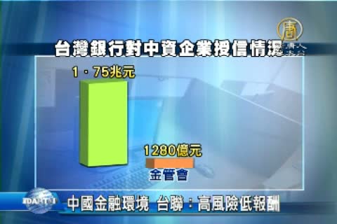 【新唐人亞太台2014年10月17日訊】台聯立院黨團今天(17日)召開記者會表示,從金管會報告的數據可以知道,台灣銀行對中國授信、投資及資金拆存的總額度高達1.75兆元,報酬率卻只有0.138%,顯然大陸是高風險低報酬的金融環境。
