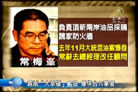 【新唐人亞太台2014年10月19日訊】頂新的黑心油案,出現新的發展,外傳彰化檢調進一步追查發現,頂新製油前總經理常梅峰,跟越南油商楊振益,關係匪淺,不排除可能是頂新高層或常梅峰,出資指使楊振益,前往越南收購劣油,再轉賣回台灣十多家業者。