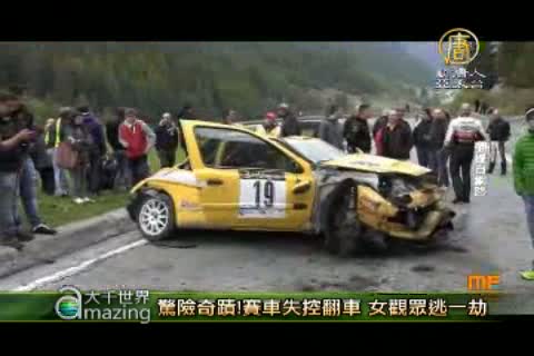 【新唐人亞太台2014年10月20日訊】接著看到也是驚險的一瞬間,義大利一場汽車拉力賽中,發生車禍的賽車向觀眾席翻滾,眼看就要「車毀人亡」,所幸,所有人都躲過了生死劫。