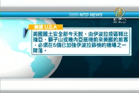 美國國土安全部今天說,由伊波拉疫區賴比瑞亞、獅子山或幾內亞搭機前來美國的旅客,必須在5個已加強伊波拉篩檢的機場之一降落。