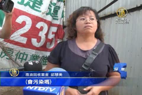 【新唐人亞太台2014年10月22日訊】近日食安問題,大家聞「油」心驚,總統馬英九說,1個月內要全面清查台灣食品地下工廠,屏東縣聯合稽查小組,今天早上到萬丹社口高屏溪一帶,查獲違規廢油回收工廠。