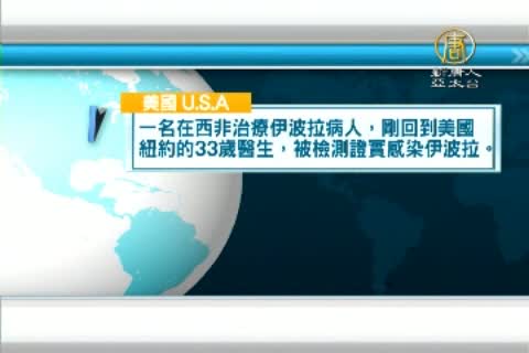 一名在西非治療伊波拉病人,剛回到美國紐約的33歲醫生,被檢測證實感染伊波拉。